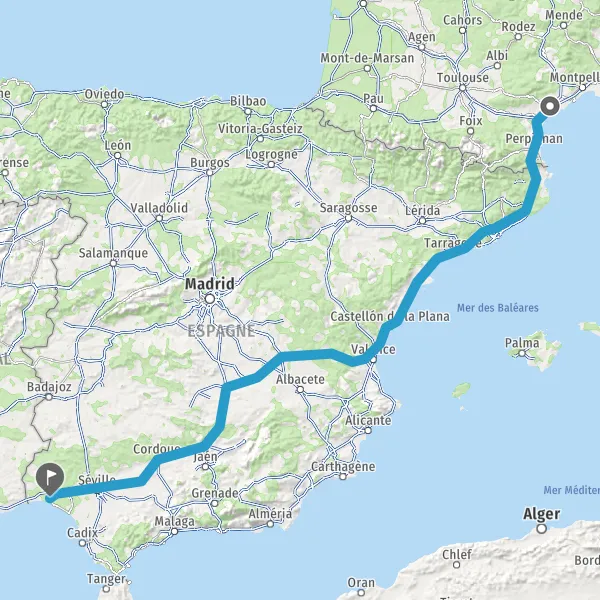 Prendre à droite et rejoindre A9 E15 E80. Continuer sur 113 kilomètres