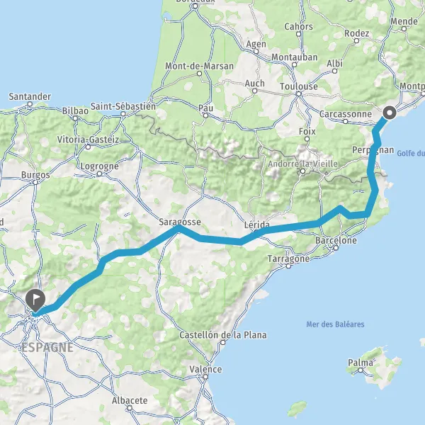 Prendre à droite et rejoindre A9 E15 E80. Continuer sur 113 kilomètres