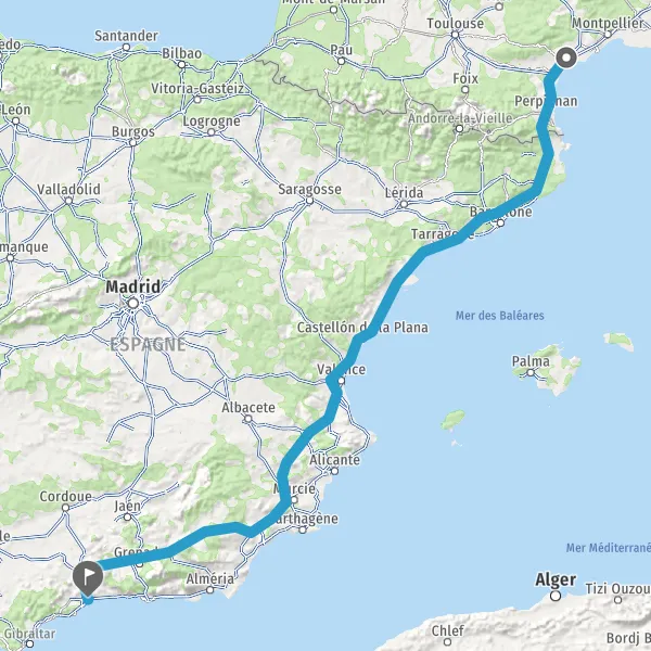 Prendre à droite et rejoindre A9 E15 E80. Continuer sur 113 kilomètres