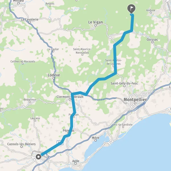 Tourner légèrement à gauche sur D32 (Route de Montpellier) et continuer sur 14 kilomètres