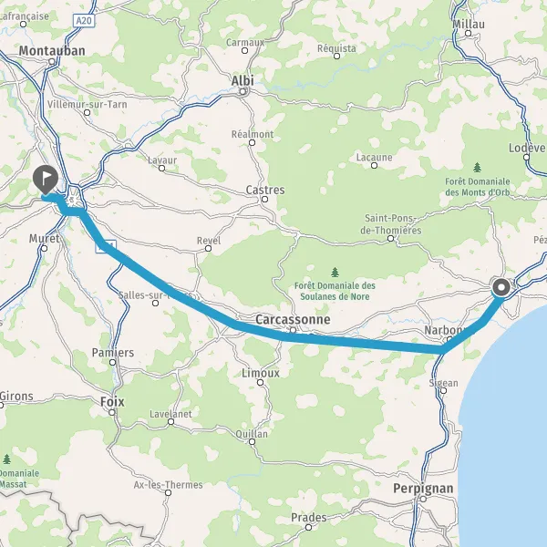 Prendre à droite et rejoindre A9 E15 E80. Continuer sur 27 kilomètres