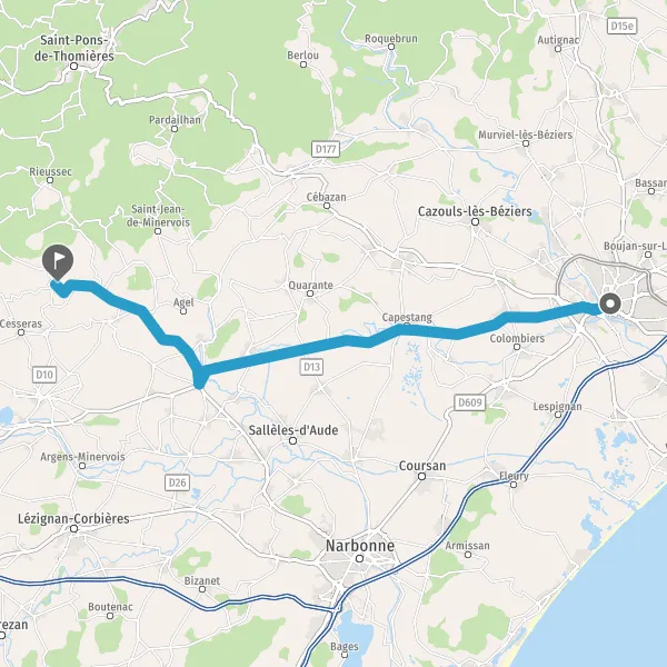 Au rond-point, prendre la 1ère sortie sur D11 (Route de Capestang) et continuer sur 3,8 kilomètres