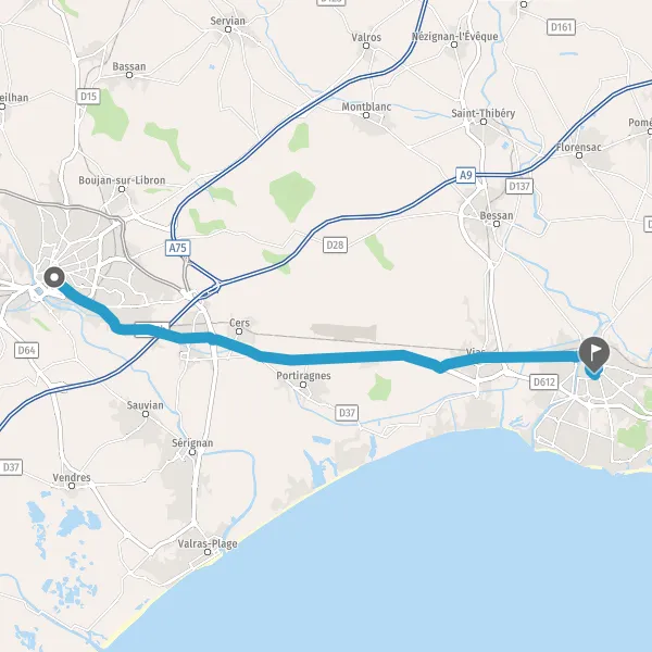 Au rond-point, prendre la 1ère sortie sur D612b (Route d'Agde) et continuer sur 3,8 kilomètres