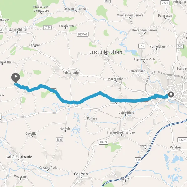 Tourner à gauche sur D39 (Route de Capestang) et continuer sur 4,5 kilomètres