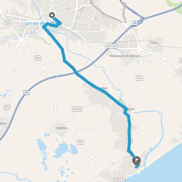 Au rond-point, prendre la 2ème sortie sur D19 D64 (Route de Valras) et continuer sur 1,4 kilomètre