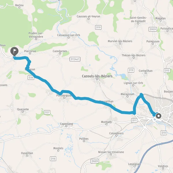 Tourner légèrement à droite sur D14 (Avenue de Cazouls) et continuer sur 180 mètres