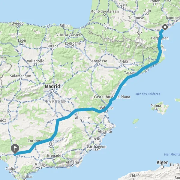 Prendre à droite et rejoindre A9 E15 E80. Continuer sur 113 kilomètres