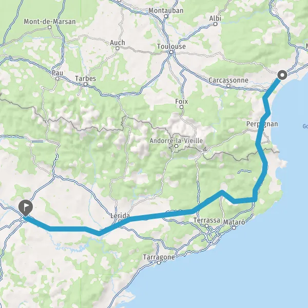 Prendre à droite et rejoindre A9 E15 E80. Continuer sur 113 kilomètres