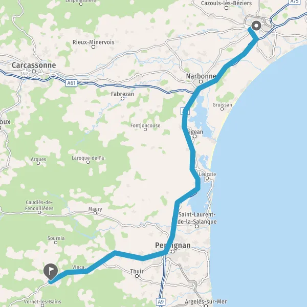 Prendre à droite et rejoindre A9 E15 E80. Continuer sur 74 kilomètres