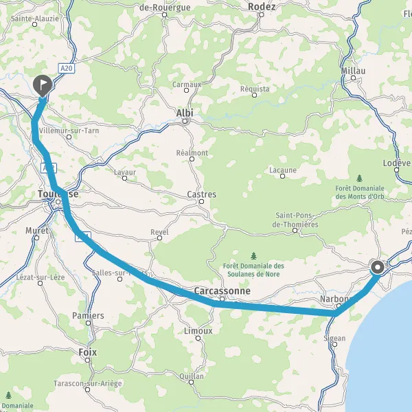 Prendre à droite et rejoindre A61. Continuer sur 136 kilomètres