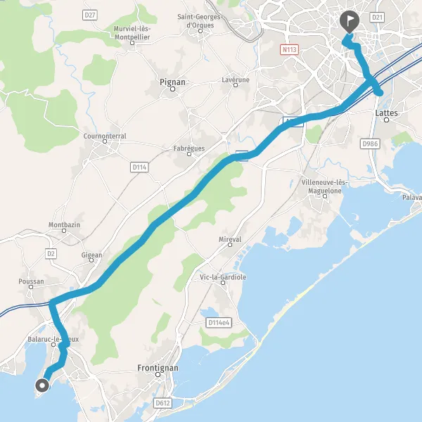Tourner légèrement à droite sur D2 D2e6 (Pénétrante de Sète) et continuer sur 450 mètres
