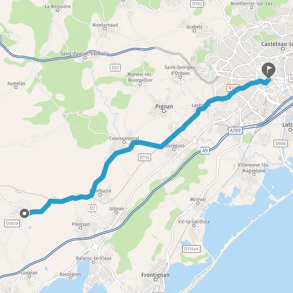 Tourner légèrement à droite sur D5e (Avenue de la Mosson) et continuer sur 400 mètres