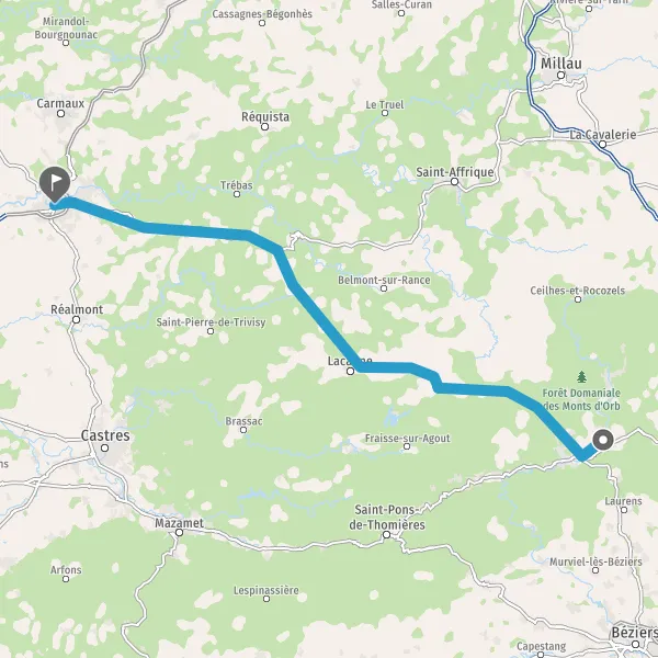 Au rond-point, prendre la 1ère sortie sur D622 (Route de Lacaune) et continuer sur 2,4 kilomètres