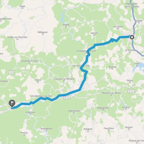Tourner légèrement à droite sur D908 (Route de Bédarieux) et continuer sur 5,2 kilomètres