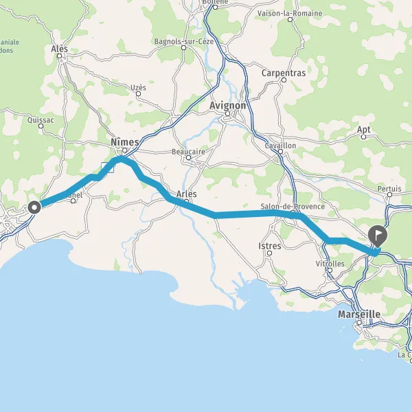 Avec le mode voiture, vous pouvez configurer vos options (type de véhicule, autoroute ou non, péage ou non, distance la plus courte), tout en ayant accès aux infos de circulation grâce à notre service d'info-trafic en temps réel. Ainsi faites des économies sur le coût ou la durée de votre voyage, en trouvant le trajet Vendargues Aix-en-Provence adapté à vos besoins.