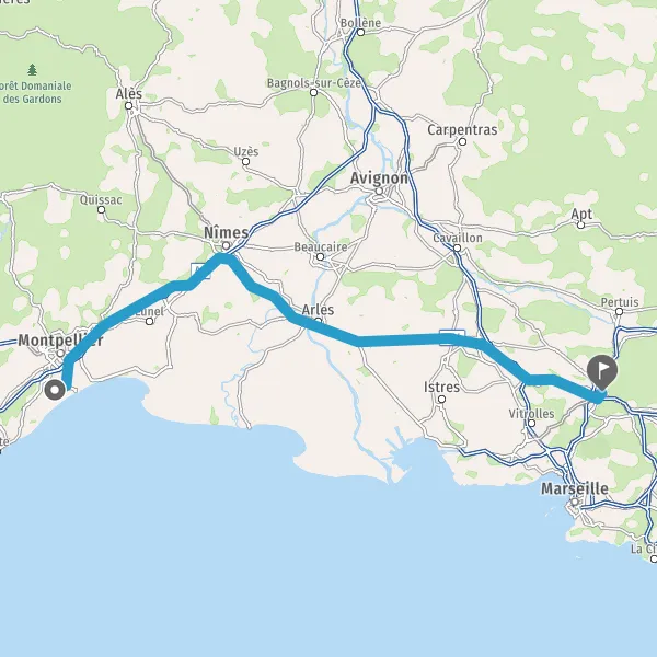 Avec le mode voiture, vous pouvez configurer vos options (type de véhicule, autoroute ou non, péage ou non, distance la plus courte), tout en ayant accès aux infos de circulation grâce à notre service d'info-trafic en temps réel. Ainsi faites des économies sur le coût ou la durée de votre voyage, en trouvant le trajet Villeneuve-lès-Maguelone Aix-en-Provence adapté à vos besoins.
