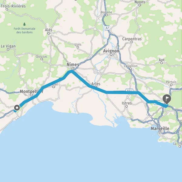 Avec le mode voiture, vous pouvez configurer vos options (type de véhicule, autoroute ou non, péage ou non, distance la plus courte), tout en ayant accès aux infos de circulation grâce à notre service d'info-trafic en temps réel. Ainsi faites des économies sur le coût ou la durée de votre voyage, en trouvant le trajet Gigean Aix-en-Provence adapté à vos besoins.