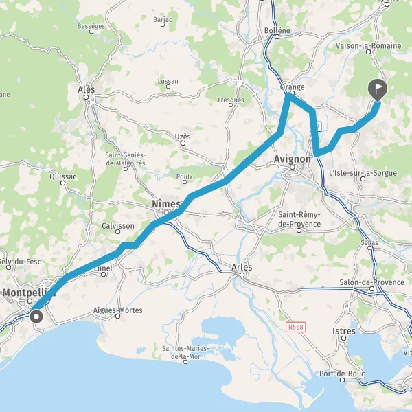 Au rond-point, prendre la 2ème sortie sur D55 (Route d'Aubignan) et continuer sur 2,2 kilomètres