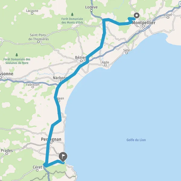 Prendre à droite et rejoindre A9 E15 E80. Continuer sur 147 kilomètres