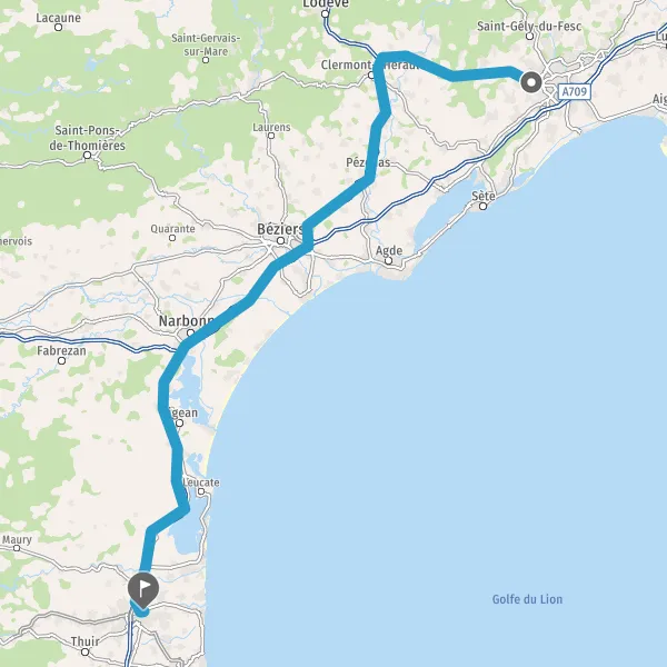 Prendre à droite et rejoindre A9 E15 E80. Continuer sur 133 kilomètres