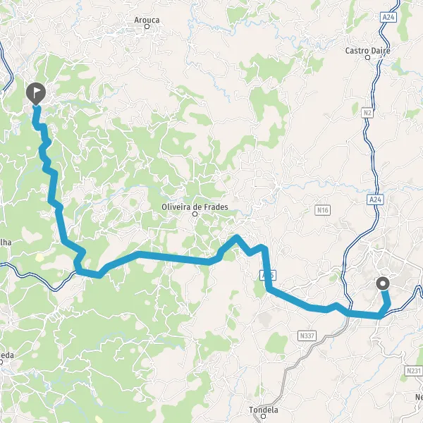 Au rond-point, prendre la 2ème sortie sur N231 (Estrada de Nelas) et continuer sur 550 mètres