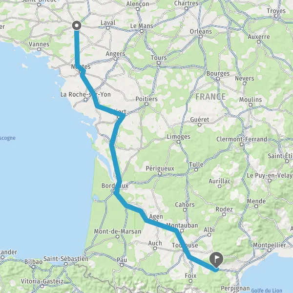 Prendre à droite et rejoindre A83. Continuer sur 150 kilomètres