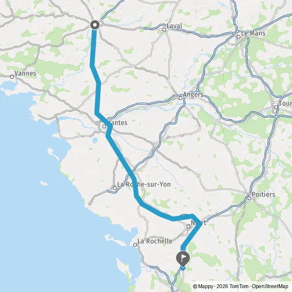 Prendre à droite et rejoindre A83. Continuer sur 150 kilomètres