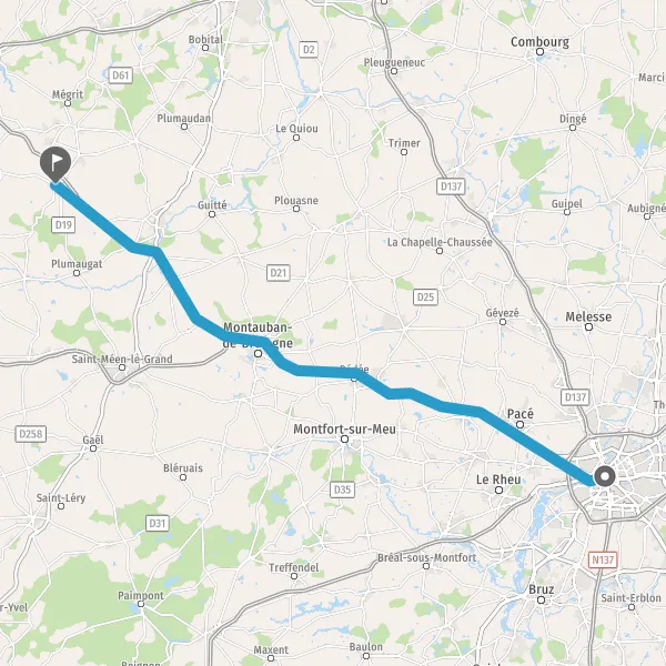 Au rond-point, prendre la 2ème sortie sur N12 (Route de Saint-Brieuc) et continuer sur 41 kilomètres