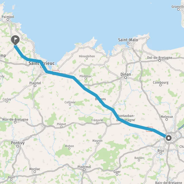 Au rond-point, prendre la 2ème sortie sur N12 (Route de Saint-Brieuc) et continuer sur 86 kilomètres