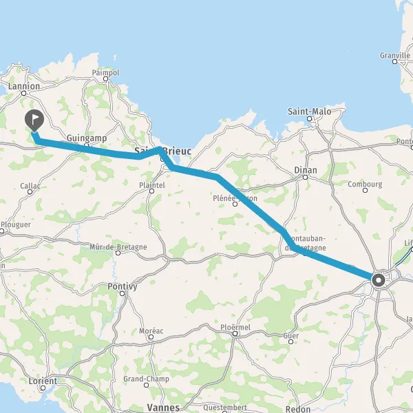 Au rond-point, prendre la 2ème sortie sur N12 (Route de Saint-Brieuc) et continuer sur 86 kilomètres