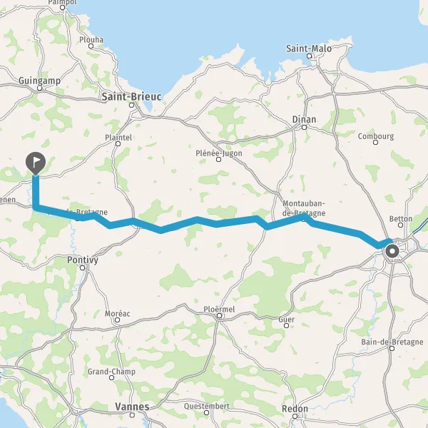Au rond-point, prendre la 2ème sortie sur N12 (Route de Saint-Brieuc) et continuer sur 29 kilomètres
