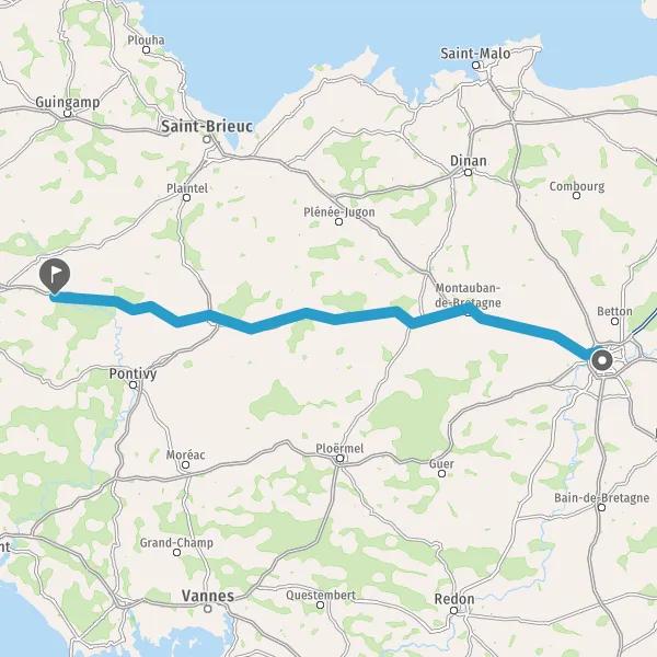 Au rond-point, prendre la 2ème sortie sur N12 (Route de Saint-Brieuc) et continuer sur 29 kilomètres