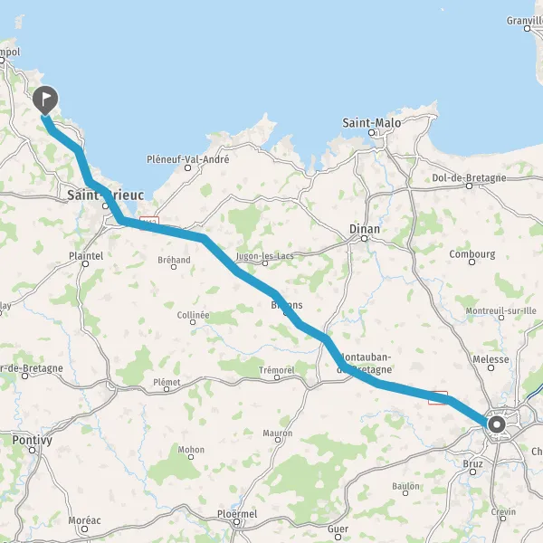 Au rond-point, prendre la 2ème sortie sur N12 (Route de Saint-Brieuc) et continuer sur 86 kilomètres