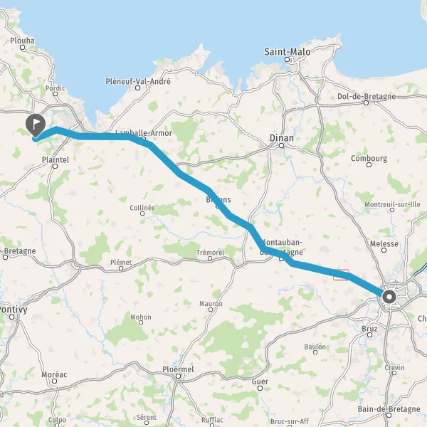 Au rond-point, prendre la 2ème sortie sur N12 (Route de Saint-Brieuc) et continuer sur 86 kilomètres