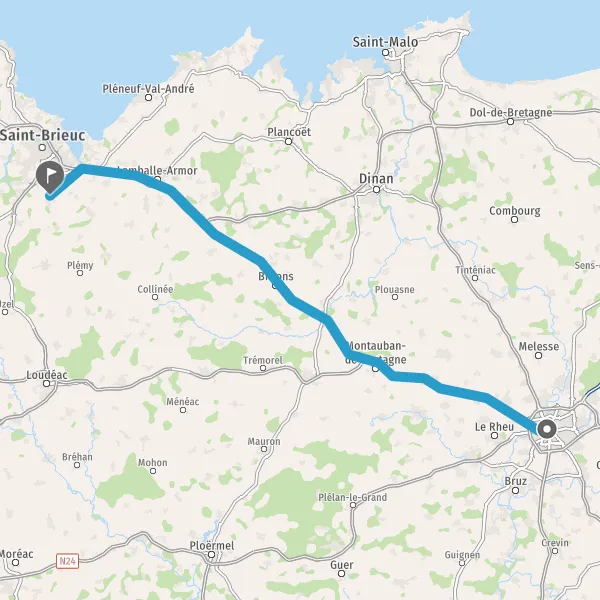 Au rond-point, prendre la 2ème sortie sur N12 (Route de Saint-Brieuc) et continuer sur 86 kilomètres