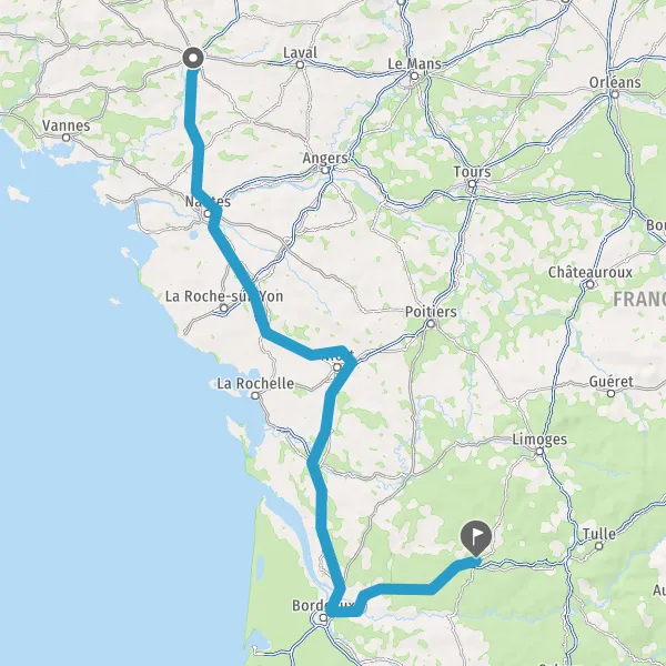 Prendre à droite et rejoindre A83. Continuer sur 150 kilomètres