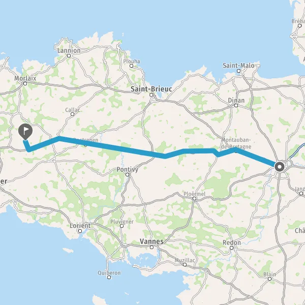 Au rond-point, prendre la 2ème sortie sur N12 (Route de Saint-Brieuc) et continuer sur 29 kilomètres