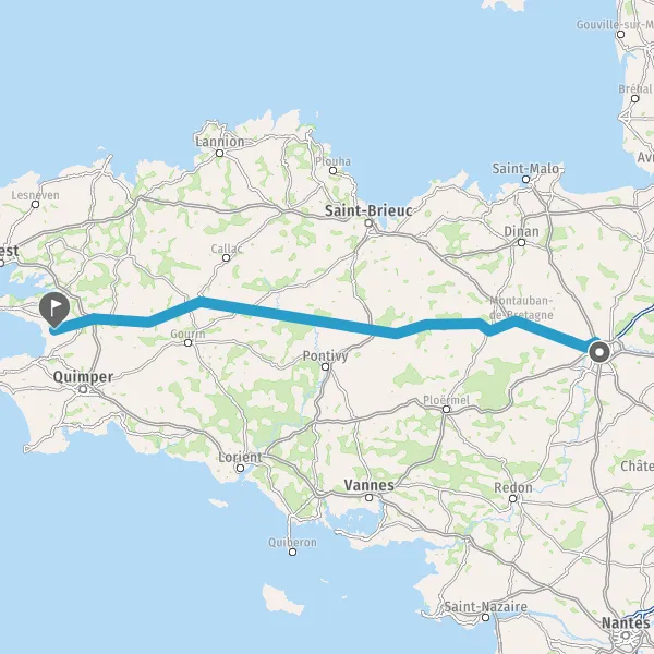 Tourner à droite sur D887 (Rue Graveran) et continuer sur 9,5 kilomètres