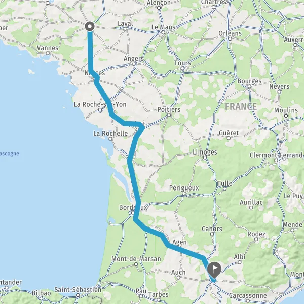 Prendre à droite et rejoindre A83. Continuer sur 150 kilomètres
