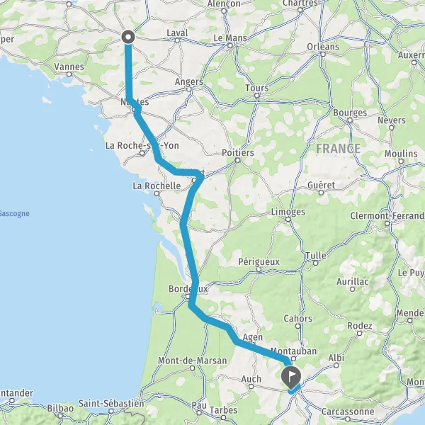 Prendre à droite et rejoindre A83. Continuer sur 150 kilomètres