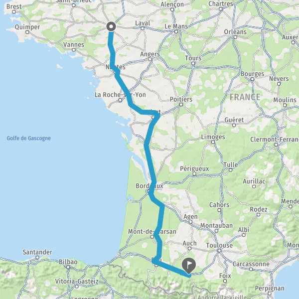 Prendre à droite et rejoindre A83. Continuer sur 150 kilomètres