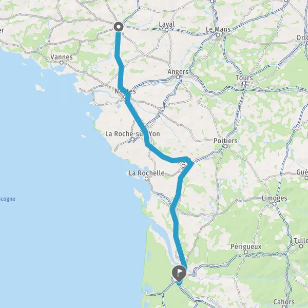 Prendre à droite et rejoindre A83. Continuer sur 150 kilomètres