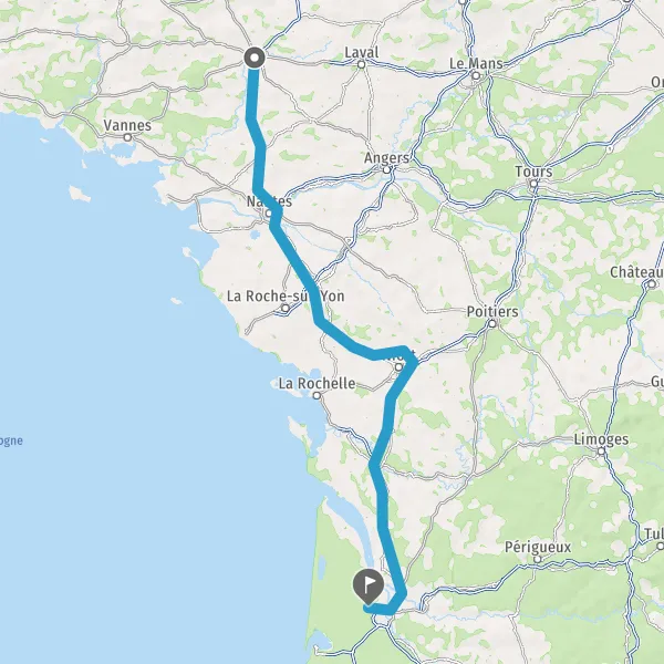 Prendre à droite et rejoindre A83. Continuer sur 150 kilomètres