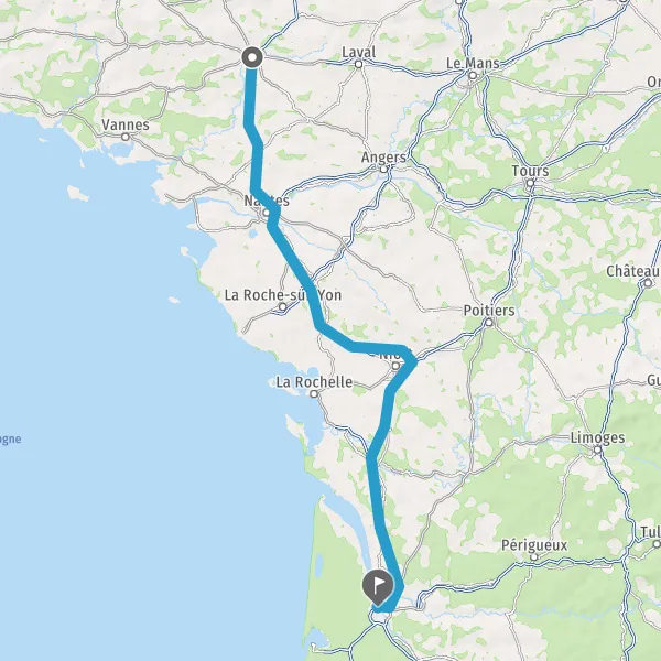 Prendre à droite et rejoindre A83. Continuer sur 150 kilomètres