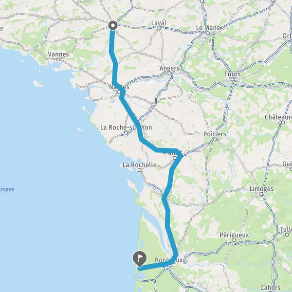 Prendre à droite et rejoindre A83. Continuer sur 150 kilomètres