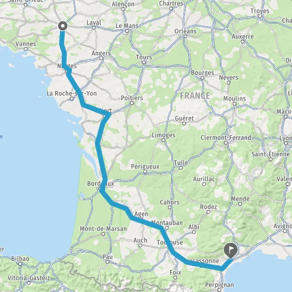 Prendre à droite et rejoindre A83. Continuer sur 150 kilomètres