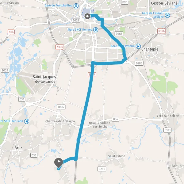 Tourner légèrement à droite sur Rue de Nantes et continuer sur 1,5 kilomètre