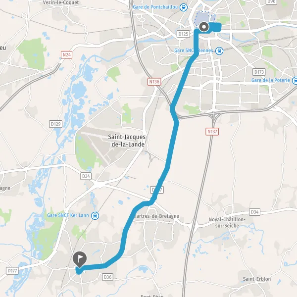 Tourner légèrement à droite sur Rue de Nantes et continuer sur 1,5 kilomètre