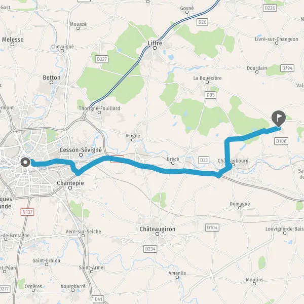 Au rond-point, prendre la 2ème sortie sur D96 (Avenue des Buttes de Coësmes) et continuer sur 1 kilomètre