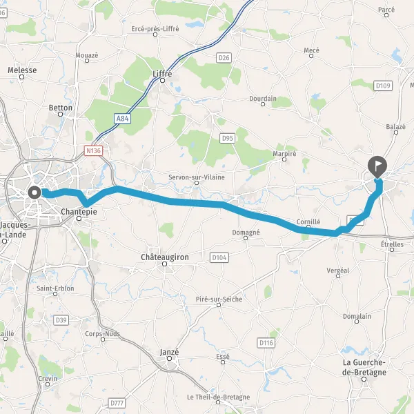 Tourner légèrement à droite sur D857 (Rue de Vitré) et continuer sur 1,3 kilomètre